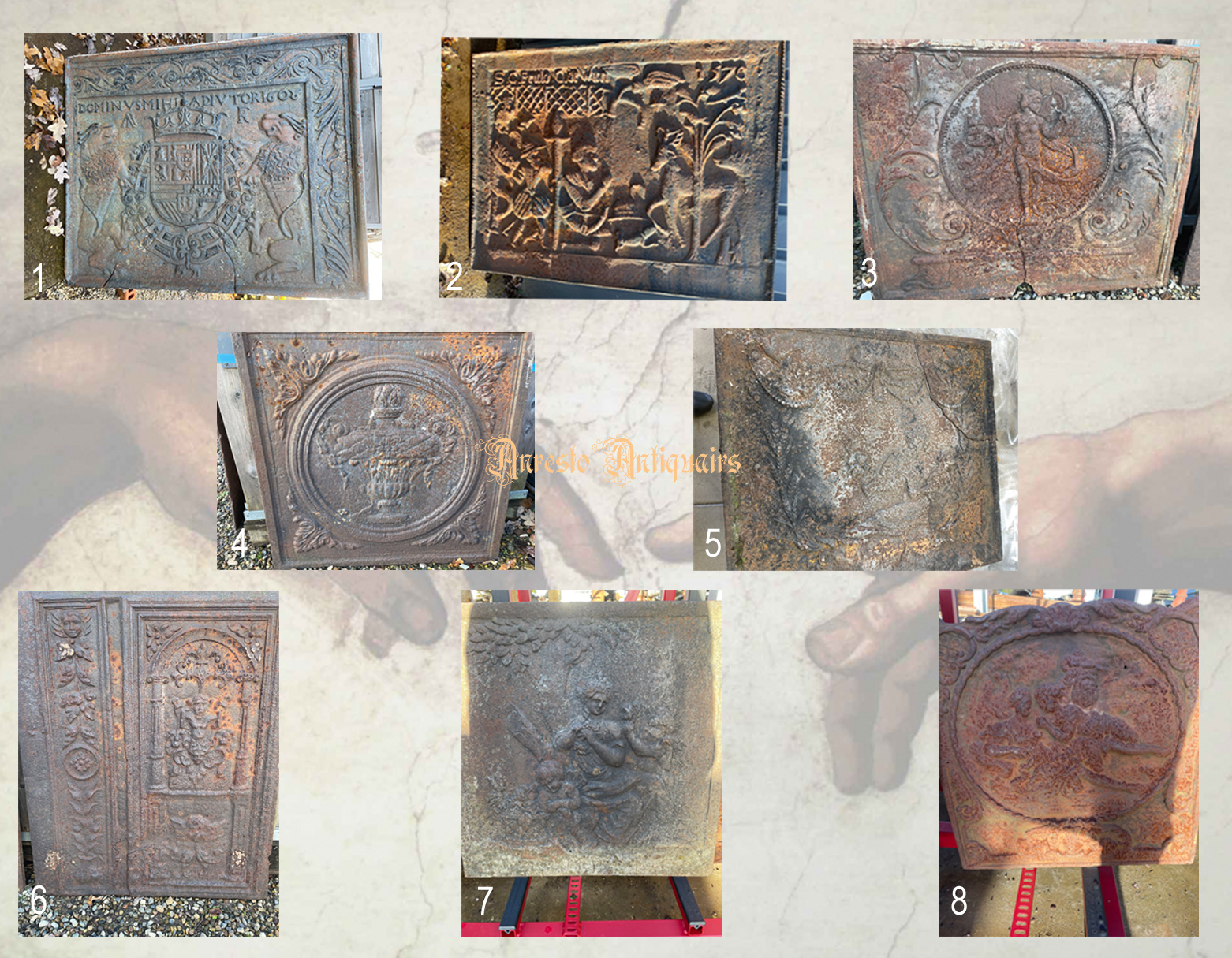Ref. 31 – Antieke gietijzeren haardplaten, antieke gietijzeren vuurplaten