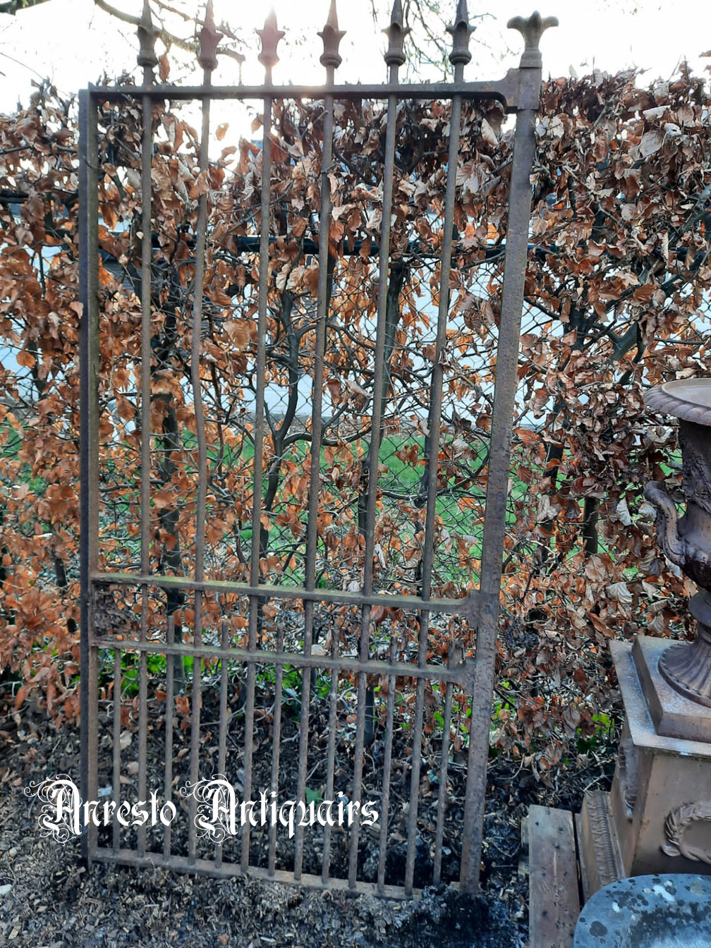 Antieke smeedijzeren ééndeurs poort. Antieke ijzeren poortdeur. 19de eeuws, +/- 1880. Afmetingen: hoogte: 2 m / breedte: 93 cm.